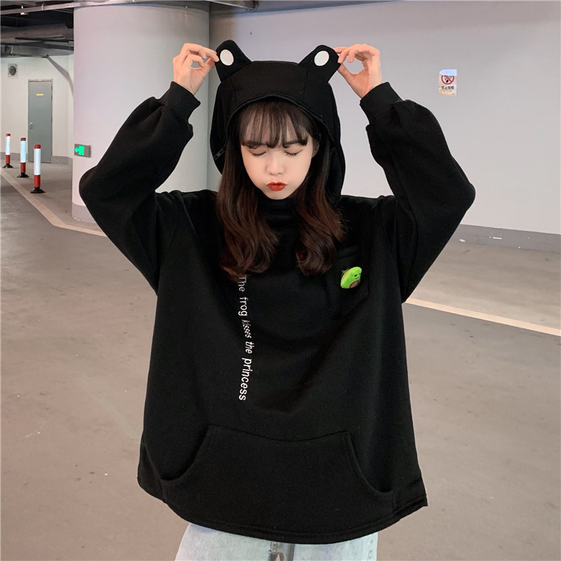 Couple's Plush Frog Pullover Zipper Sweater